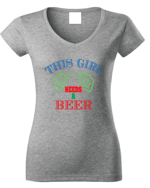 Comandă-ți acum tricoul personalizat „This Girl Needs a Beer”, un must-have pentru femeile fericite și pline de viață!